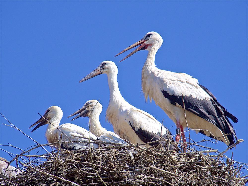 Auch eine frei fliegende Storchenkolonie brütet direkt am Affenberg. Das Geklapper der Störche ist überall zu hören.