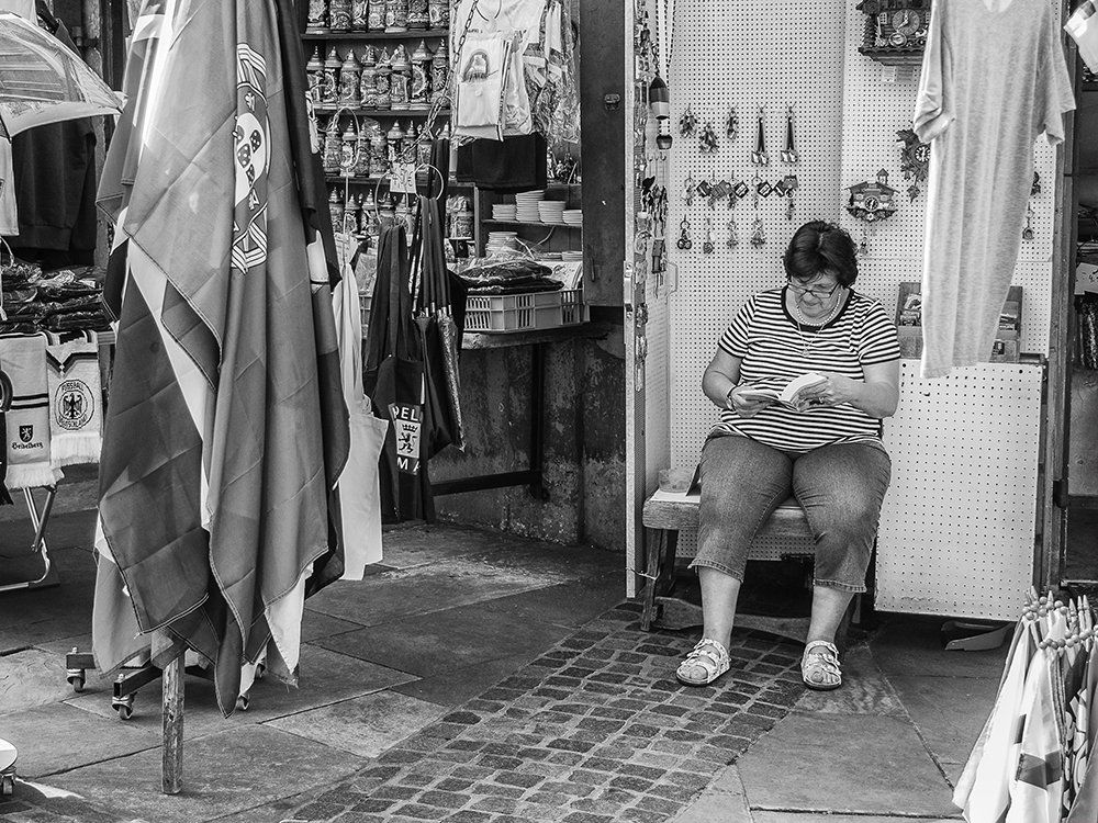 I.d.R. wurde im Schwarzweis Modus fotografiert( bzw. in RAW +SW), auch um sich das Ergebnis plastischer vorstellen zu können. Street lebt nun mal von Schwarzweis, nichts soll vom Motiv ablenken, das urbane SW sollte sich Bahn brechen....