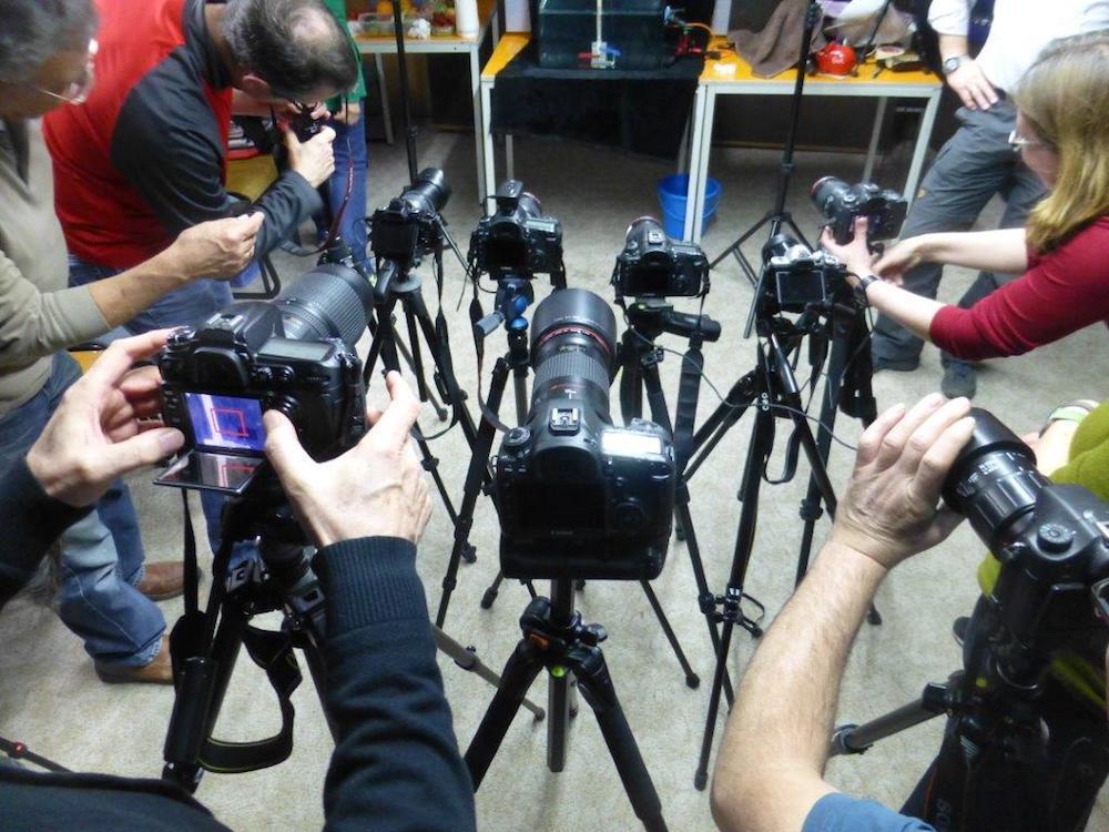 Am 15.3.2018 veranstalteten wir einen Workshop zum Themenkreis “Highspeed-Fotografie”: Wir wollten Früchte fotografieren während sie ins Wasser fallen und dabei eine Verwirbelung im Wasser hinterlassen.