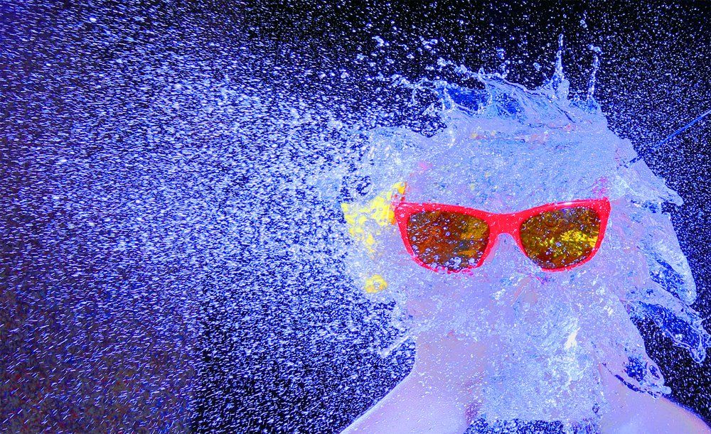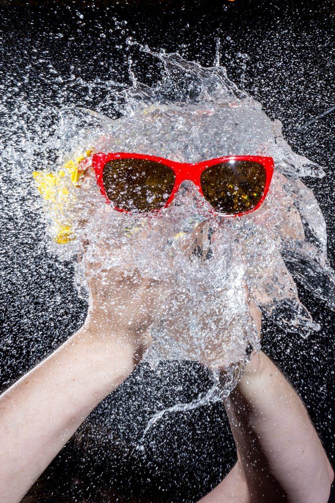 Eine besondere Note brachte am Ende noch Helga ein: Sie hielt die Wasserbombe in ihren Händen als sie zerstochen wurde - allein an diesem Foto kann man schon erkennen, welchen Spass wir beim Shooting hatten - wenn auch das Aufräumen hinterher aufwendig war (Da wir vollständige Dunkelheit brauchten, mussten wir diese Aufnahmen in unserem Klubraum machen).