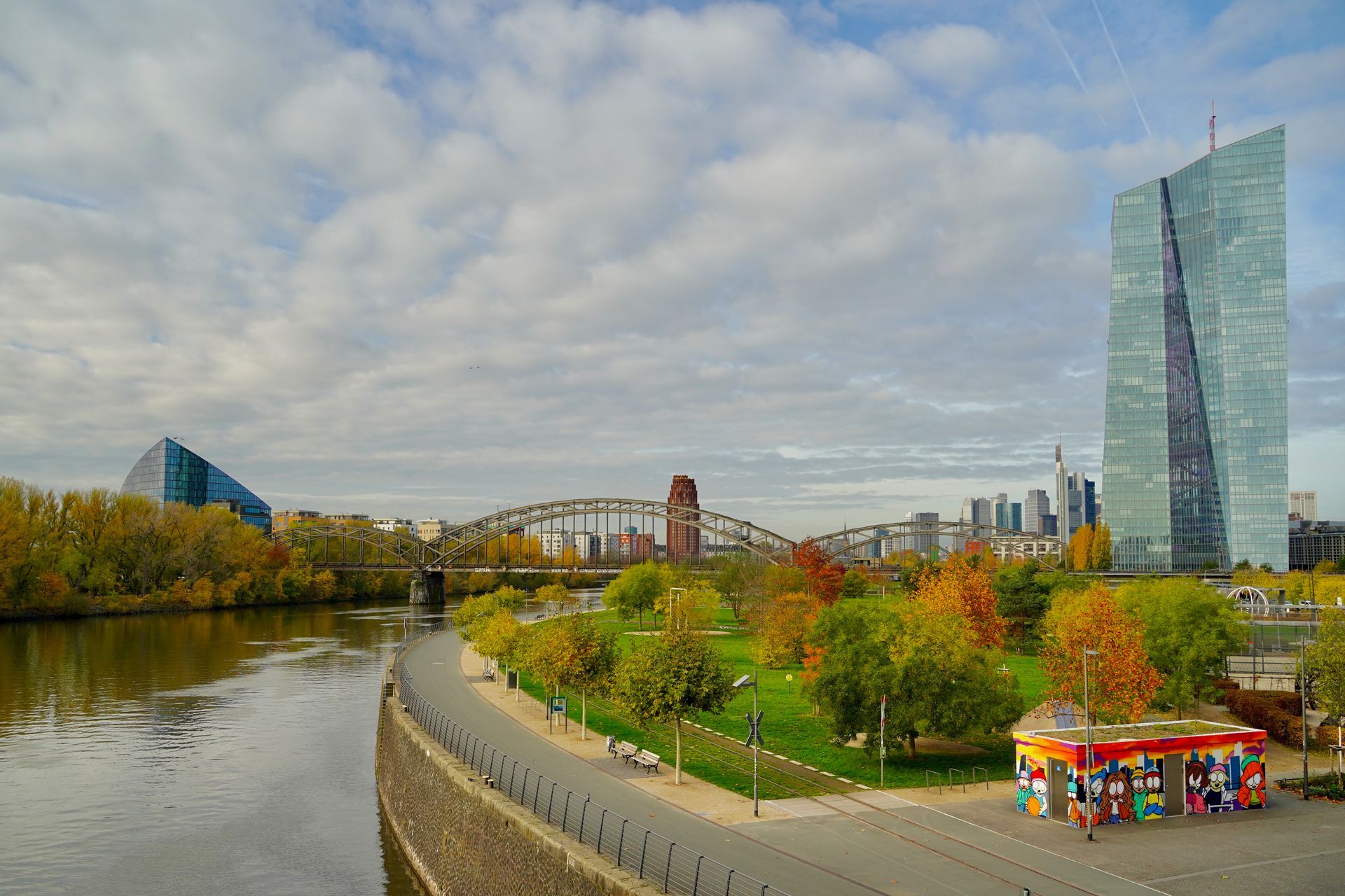 Am 4.11.2025 haben sich einige Mitglieder des Fotoklubs und befreundete Fotografen zu einer Fotoexkursion nach Frankfurt aufgemacht. Ziel war es von einer der Mainbrücken die Skyline von Frankfurt während des Sonnenuntergangs und danach zu fotografieren. Da wir schon während des Tages in Frankfurt waren, haben wir die hellen Stunden für einen fotografischen Streifzug durch Frankfurt genutzt.