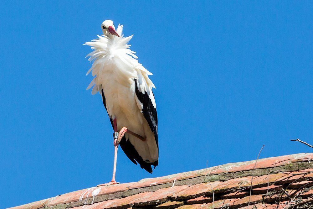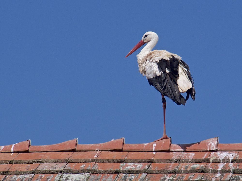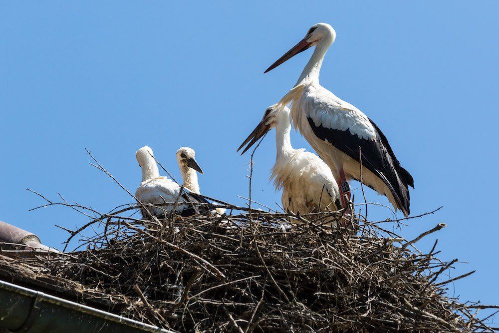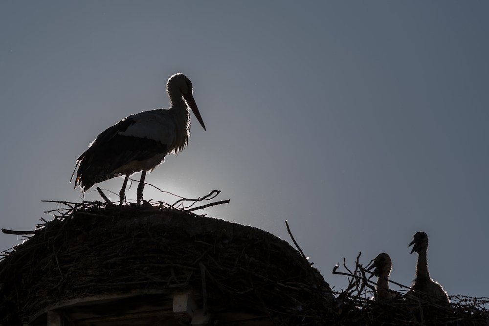 Auch eine frei fliegende Storchenkolonie brütet direkt am Affenberg. Das Geklapper der Störche ist überall zu hören.