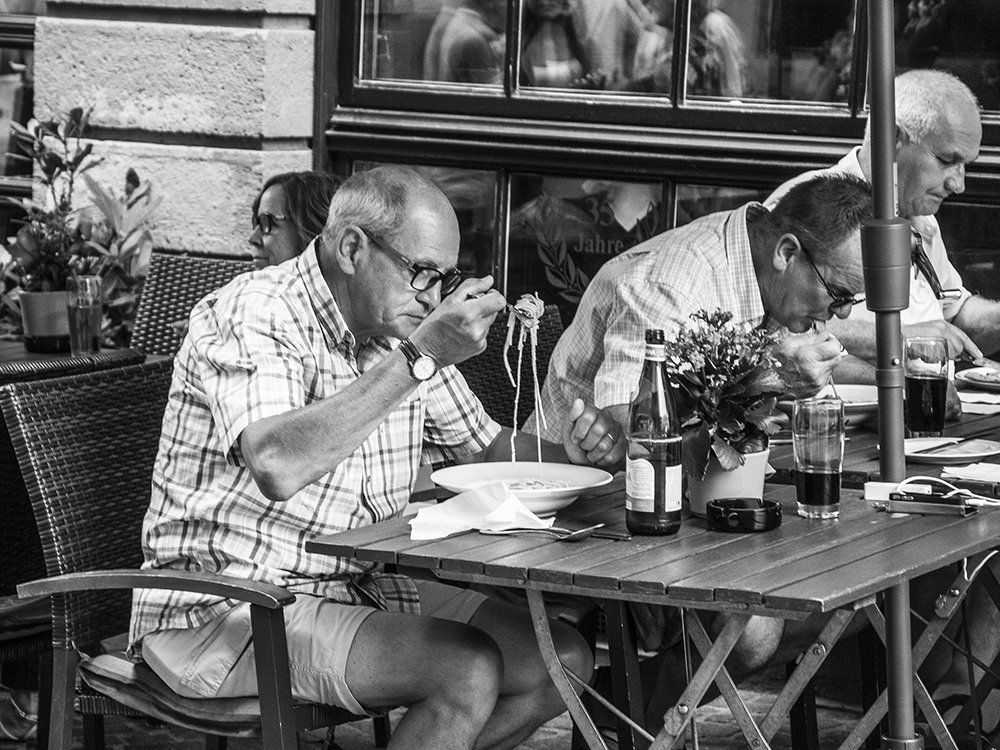 I.d.R. wurde im Schwarzweis Modus fotografiert( bzw. in RAW +SW), auch um sich das Ergebnis plastischer vorstellen zu können. Street lebt nun mal von Schwarzweis, nichts soll vom Motiv ablenken, das urbane SW sollte sich Bahn brechen....