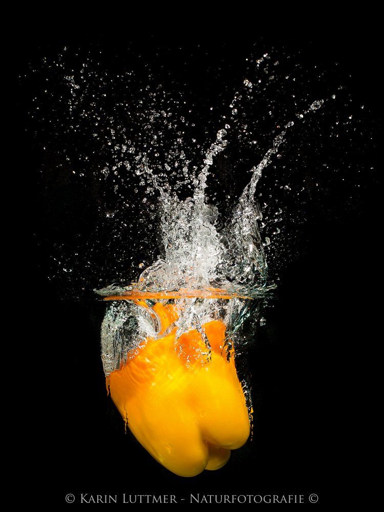 Am 15.3.2018 veranstalteten wir einen Workshop zum Themenkreis “Highspeed-Fotografie”: Wir wollten Früchte fotografieren während sie ins Wasser fallen und dabei eine Verwirbelung im Wasser hinterlassen.