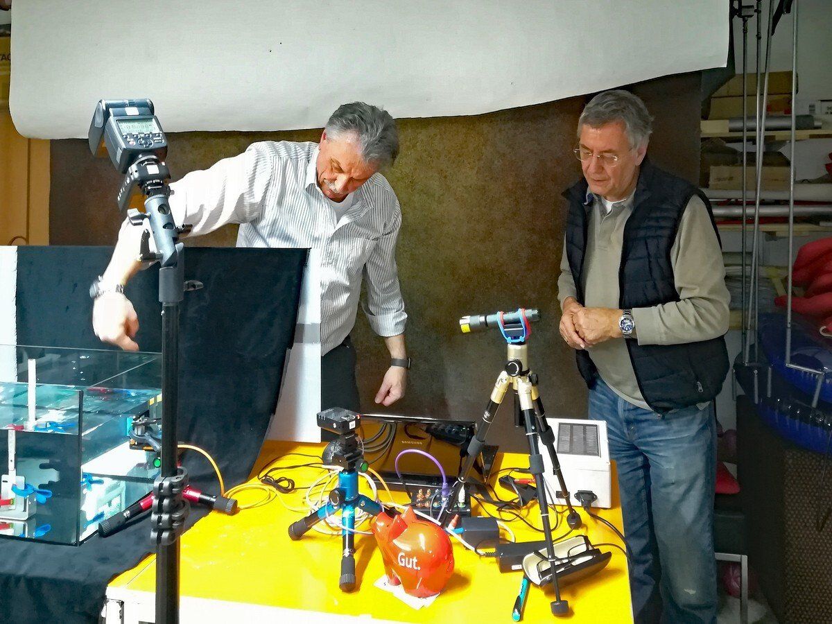 Um keine Bewegungsunschärfen zu erhalten fotografierten wir mit einer Blitzzeit von 1/32.000 Sekunde. Eine Lichtschranke - über die wir die Blitze auslösten - sorgte dafür, dass wir nicht allzu sehr vom Zufall abhängig waren.