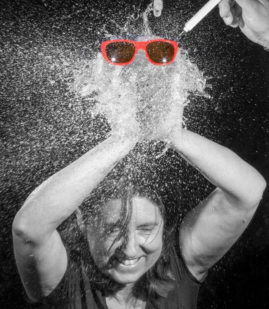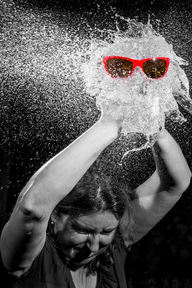 Eine besondere Note brachte am Ende noch Helga ein: Sie hielt die Wasserbombe in ihren Händen als sie zerstochen wurde - allein an diesem Foto kann man schon erkennen, welchen Spass wir beim Shooting hatten - wenn auch das Aufräumen hinterher aufwendig war (Da wir vollständige Dunkelheit brauchten, mussten wir diese Aufnahmen in unserem Klubraum machen).